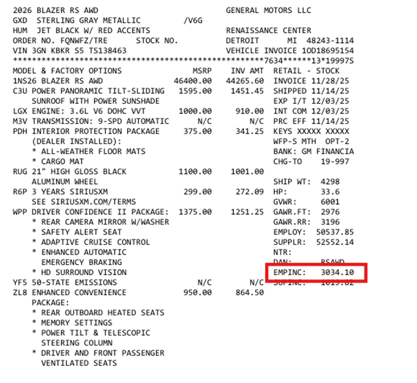 Leave in cost of vehicle front end and credit policy new or used. If not preloaded, GLA - 300A | $115 | STARGARD